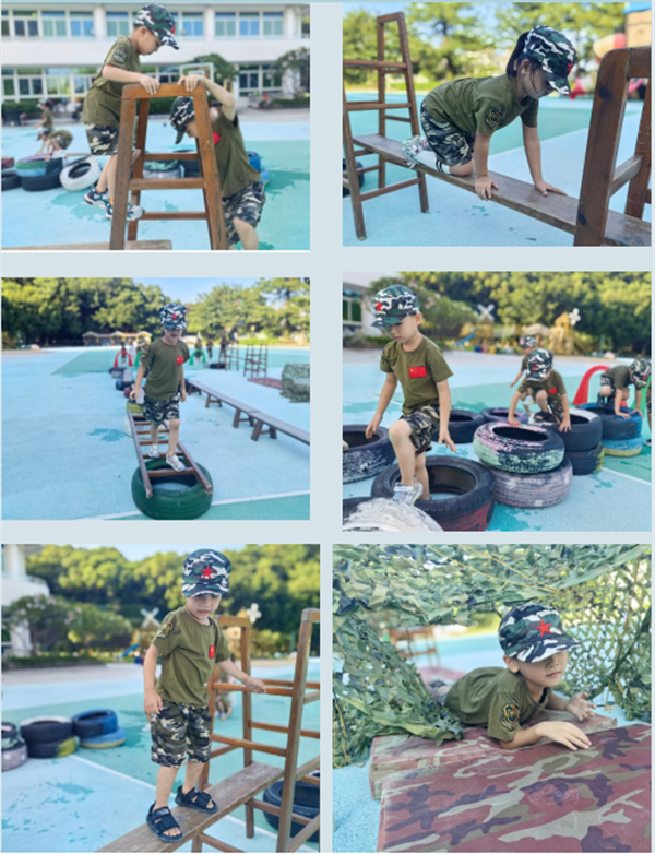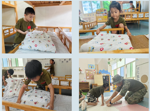 小兵军训、内务整理、军事营地训练、夜晚拉练、观看大学生军训汇演等系列活动,孩子们不仅领悟纪律的含义、规范的意义,更展露出一个小军人的风采,收获了团结、友爱、互助、合作。