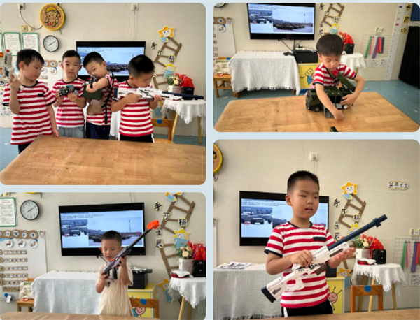 随着孩子们的谈话深入,他们的兴趣点聚焦在了各种武器装备上。我们顺势生成了“探秘中国军事武器”的探究活动。