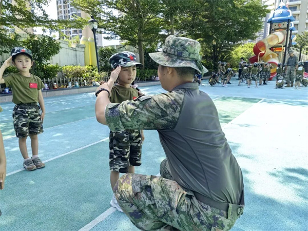 军礼,是军人的一种符号、一种象征、一种荣誉。阳光下,这群“小小兵”正在接受着属于他们的考验,立正、稍息、敬礼、蹲下、起立,不管是流汗还是流泪,严明的纪律无形中感染着孩子。