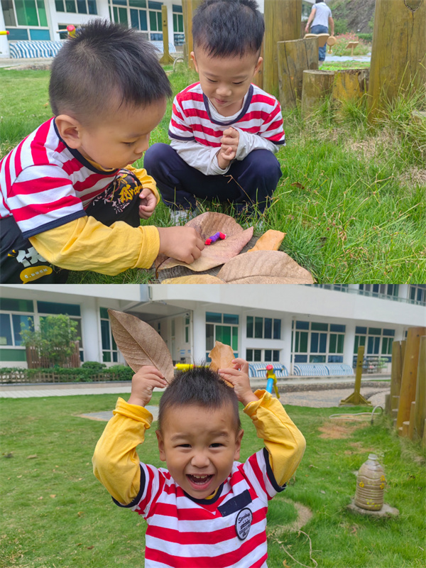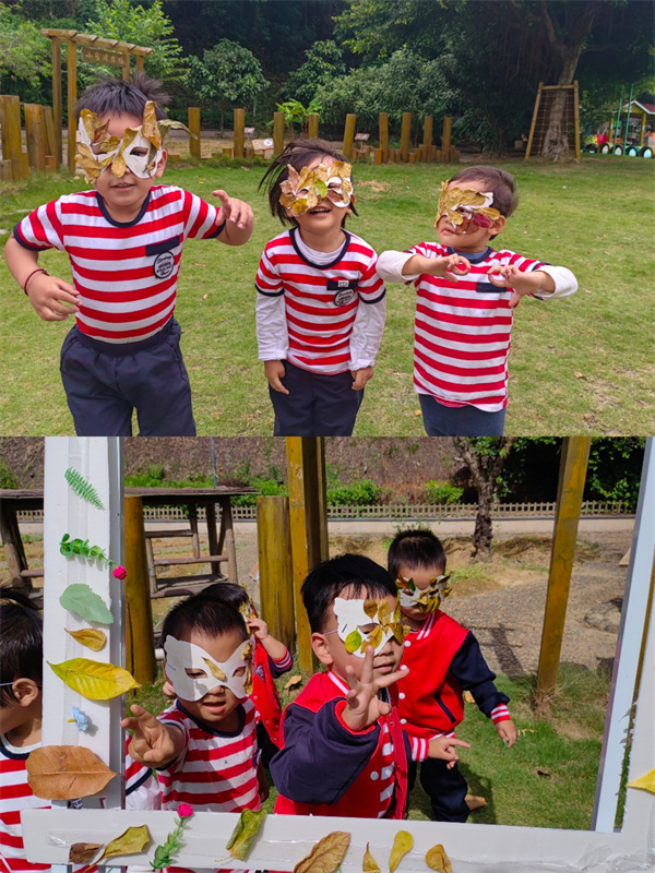 每个孩子都尽情挥洒创意,制作了属于自己的树叶面具和创意相框。这份亲手创造的成就感,让美的种子在孩子们心中生根发芽。