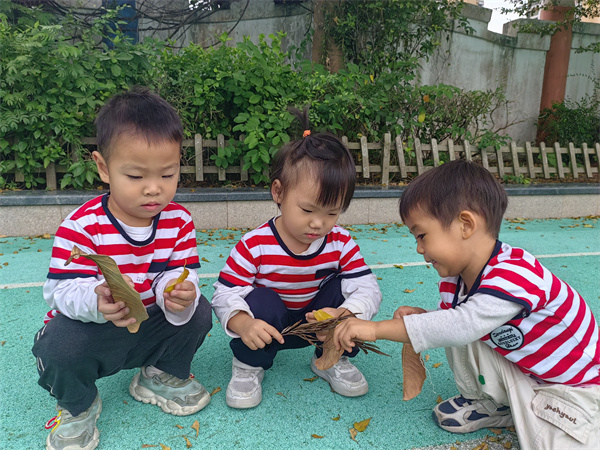 活动伊始,孩子们便化身为“小小发现家”。他们用小手轻轻拾起形状各异的落叶,仔细观察叶脉的纹路与颜色的变化。这不仅是一次自然观察,更是一堂生动的“生命教育”课,让孩子们在直接感知中,理解季节的轮回与自然的奥秘。