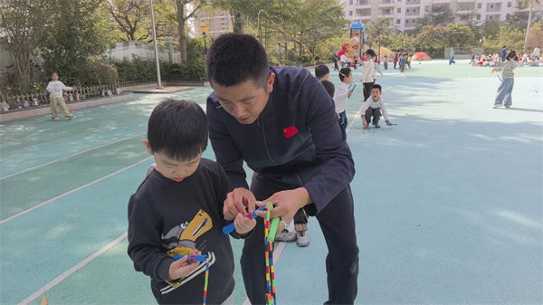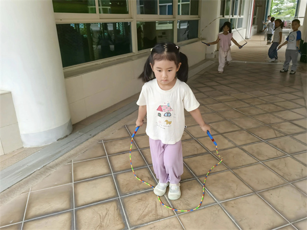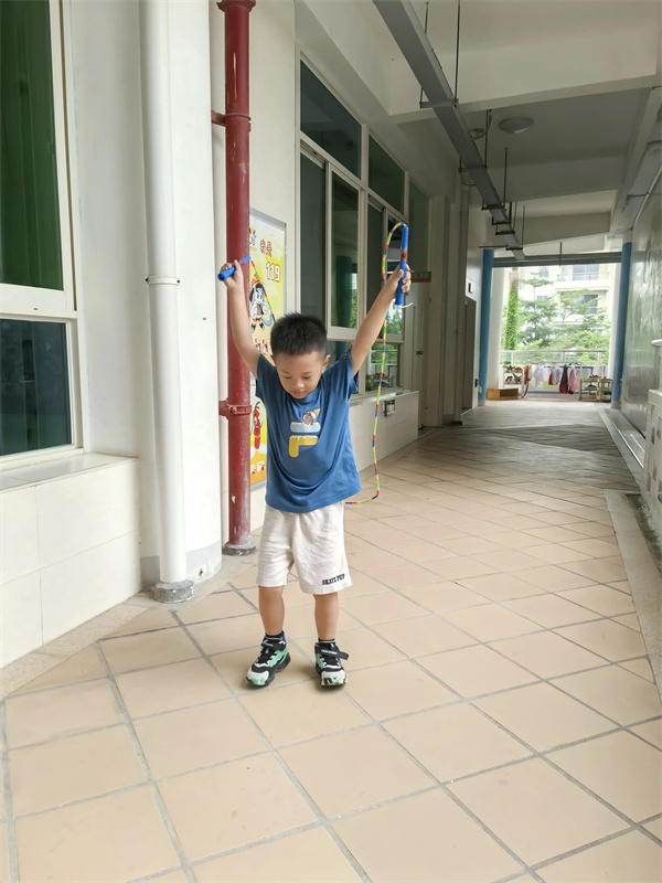 幼儿不再满足于“单人跳”,开始尝试:双人跳;交叉跳;带人跳;花样跳绳表演……操场上,绳影飞舞,笑声不断。他们用跳绳编织出属于童年的节奏与旋律。