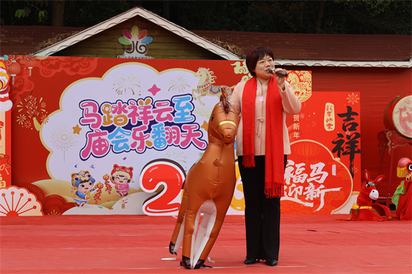 活动当天,园区内张灯结彩,喜气洋洋。家长与孩子们身着喜庆红火的新年服饰,整个幼儿园沉浸在浓郁的节日氛围中。上午8:40,欢快的音乐响起,“马到成功幸福门”前人头攒动,孩子们与家长在此打卡拍照,定格美好瞬间,随后“一马当先”开场派对准时拉开帷幕。教师组活力四射的开场舞《好运全都来》后,各段幼儿和家长带来精心准备的亲子展演,看,孩子们稚嫩的脸庞洋溢着自信与喜悦。随后园长老师发表热情洋溢的致辞,代表幼儿园衷心感谢幼儿园理事会和全体家长、以及华侨博物馆和厦门大学嘉庚学院相关院校对幼儿园本届庙会的大力支持。最后,园长和代表幼儿敲响大鼓,宣布庙会正式开始!整场开场热闹非凡,掌声与欢呼声此起彼伏。